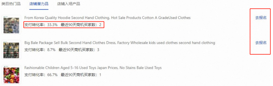 现状:如商家店铺的商品A后面出现如下“去报名”按钮,说明转化率已满足要求。 商家建议动作:直接点击去报名,报名系统将提升价格是否为180天最低动销价,如不是只需调整价格。