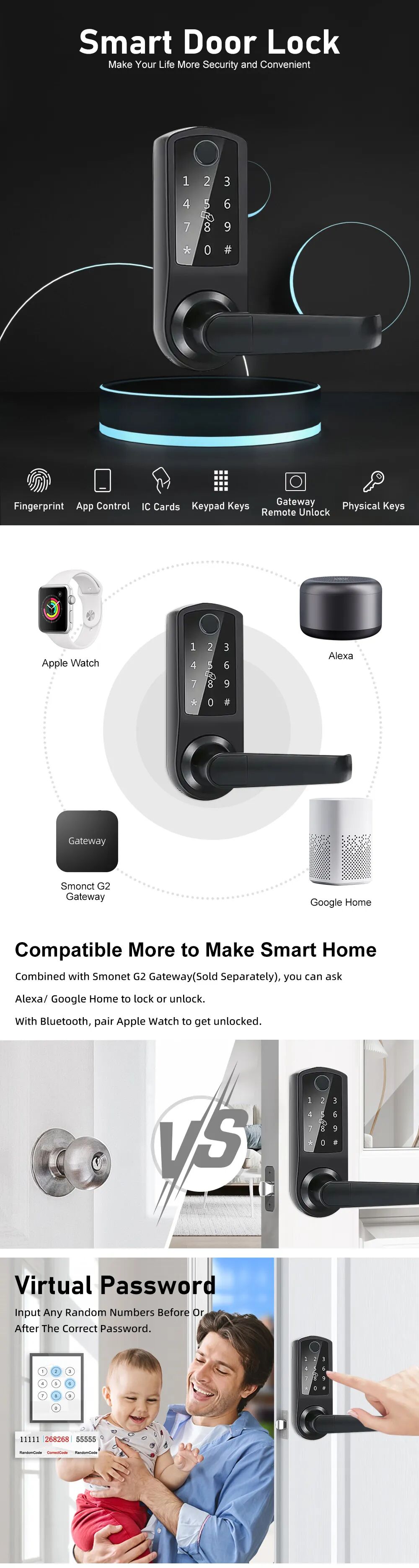 该智能锁产品的详情页设计主要为突出产品“安全、便捷、智能”为主,同时通过应用场景展示产品的外观设计,让客户直观了解到产品的高端品质以及产品优势。