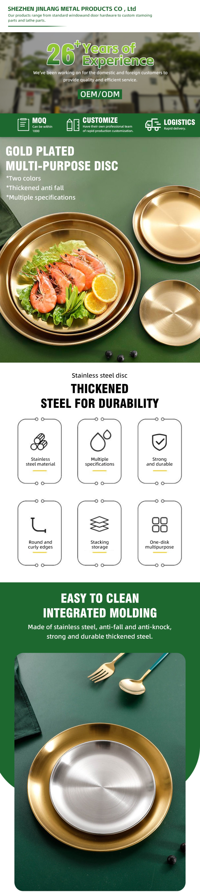 该店铺的详情页设计首先展示的是26年老店的slogan,目的是为吸引买家继续浏览。结合场景展示产品材质、优势,让用户全面了解产品的使用效果,同时带给买家愉悦的购物体验。